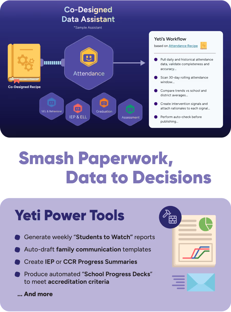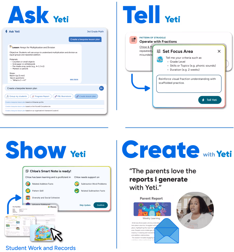 Explore how we solve the most pressing challenges in education with modular, configurable solutions tailored to your needs. All student tools integrate seamlessly with the Yeti Co-Pilot, giving you real-time insights and a connected learning ecosystem.